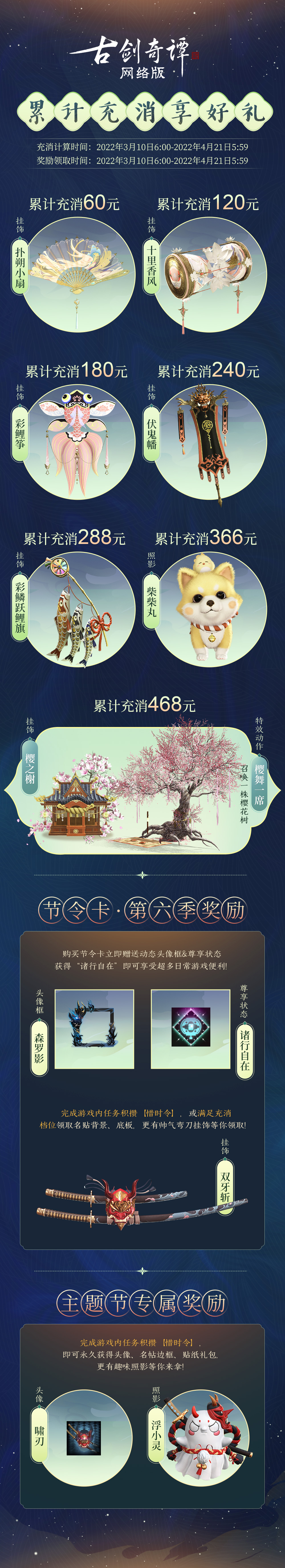 累计消费4680通宝可获:特效挂饰·月【樱之榭】。