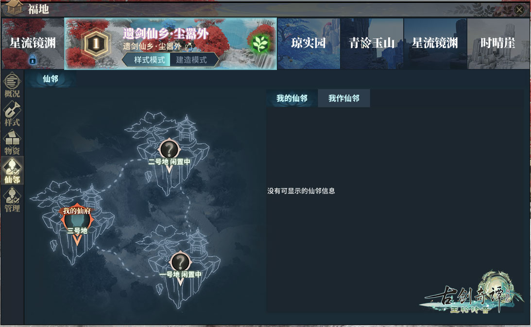 在某些建造区域中,仙家弟子除了拥有自己的建造用地外,还拥有特殊的仙邻用地。仙家弟子可以邀请自己的好友们前来建造仙邻用地,也可以受邀前往不同好友的仙府中建造仙邻用地,真正地与友为邻,共建仙乡。