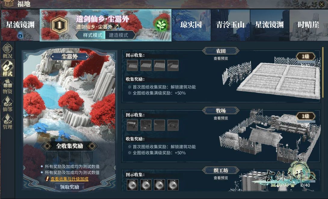 新仙府每个建造区域将提供【自由建造】和【样板】两个模式。