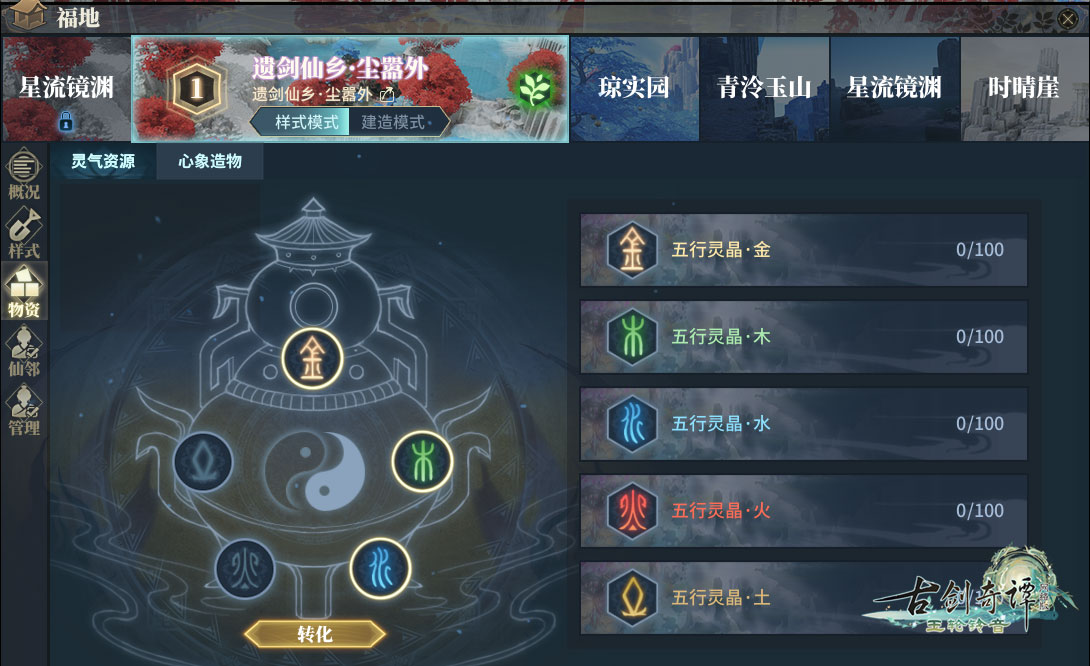 新增五行灵气概念,让仙府心象造物制作变得更容易