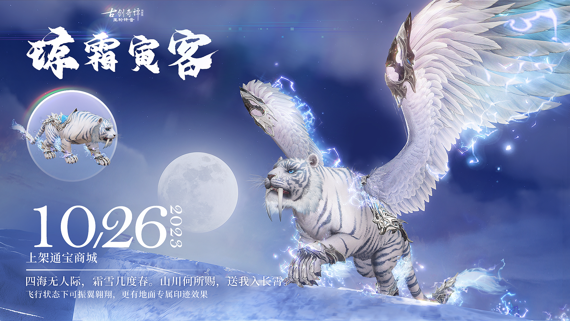 全新坐骑【琼霜寅客】将于本周四更新维护后上架通宝商城。